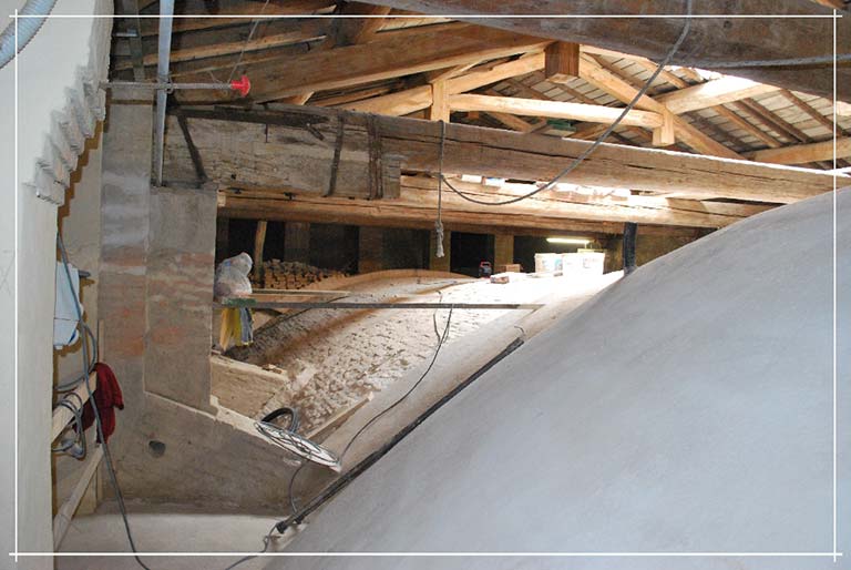 Per i lavori più grossolani si sarebbe usata una certa calce di Bazzano, ma per stabilire, sagramare e tirare cornici si sarebbe utilizzata la calce fornita dal calcinarolo di San Luca. Altre interessanti notizie che si ricavano dalle lettere del Dotti riguardano le basi di macigno da porsi alle pilastrate dentro la chiesa e nella facciata per di fuori.